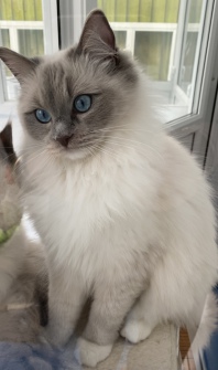 Firefly is a beautiful, blue colourpoint girl who we bought in to diversify our lines. A dense, snow white coat contrasts beautifully against her deep blue points. The deepest of blue eyes that convey such a sweet expression that sum up this truly delightful girl. She is maturing nicely and we are looking forward to seeing how she develops over time.