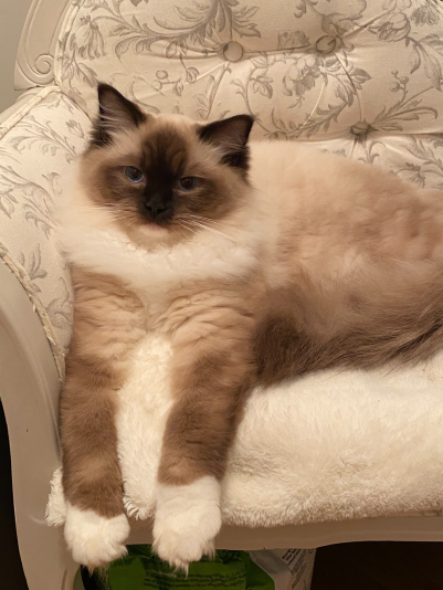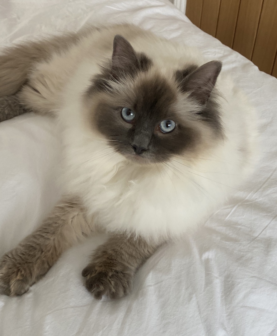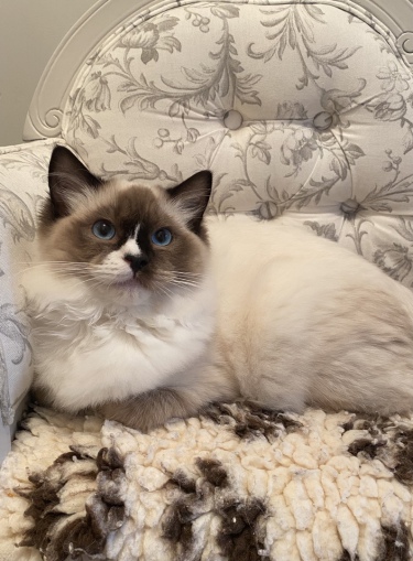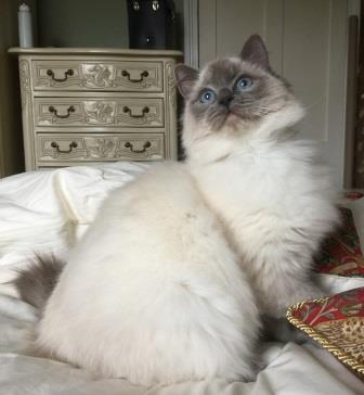 Martha, my blue colourpoint carrying chocolate, home-bred girl. Perfectly marked and with a fantastic temperament. Snowy white coat and beautiful deep blue eyes make this girl an absolute stunner.
