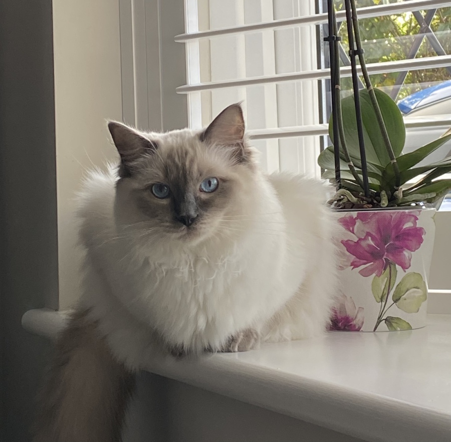 Our gorgeous, Gladtidings 4th Generation, home-bred seal mitted girl Cattleya, who is so laid back it is almost nigh on impossible to obtain a photo of her standing up, therefore, in the end I admitted defeat hence the laying down pose. She is such a pretty girl with the silkiest of coats, deep blue eyes and gorgeous little mittens. She is a lovely mix of non-traditional and traditional lines to ensure diversity within the gene pool.